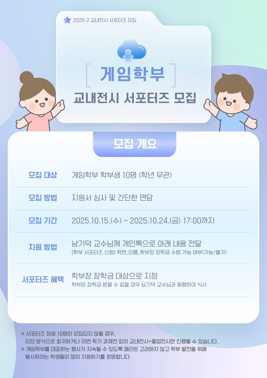 2025-2 게임학부 ‘교내전시’ 서포터즈 모집